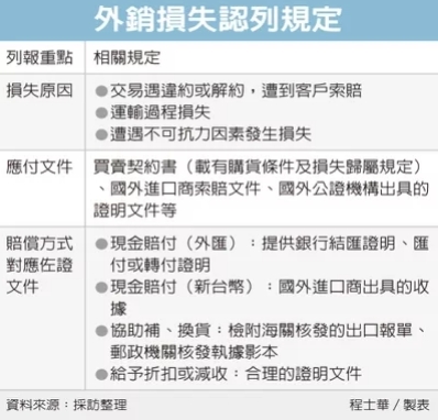 官員表示,列報外銷損失時,不只要準備支付或折讓的證明,還需要提供違約、對方索賠,或公證機構的證明,以免因列報文件不足,遭到剔除並補稅,影響自身權益。