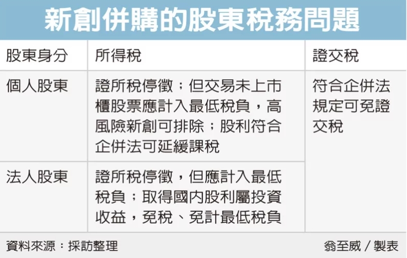 新創企業被併 留意股東稅負